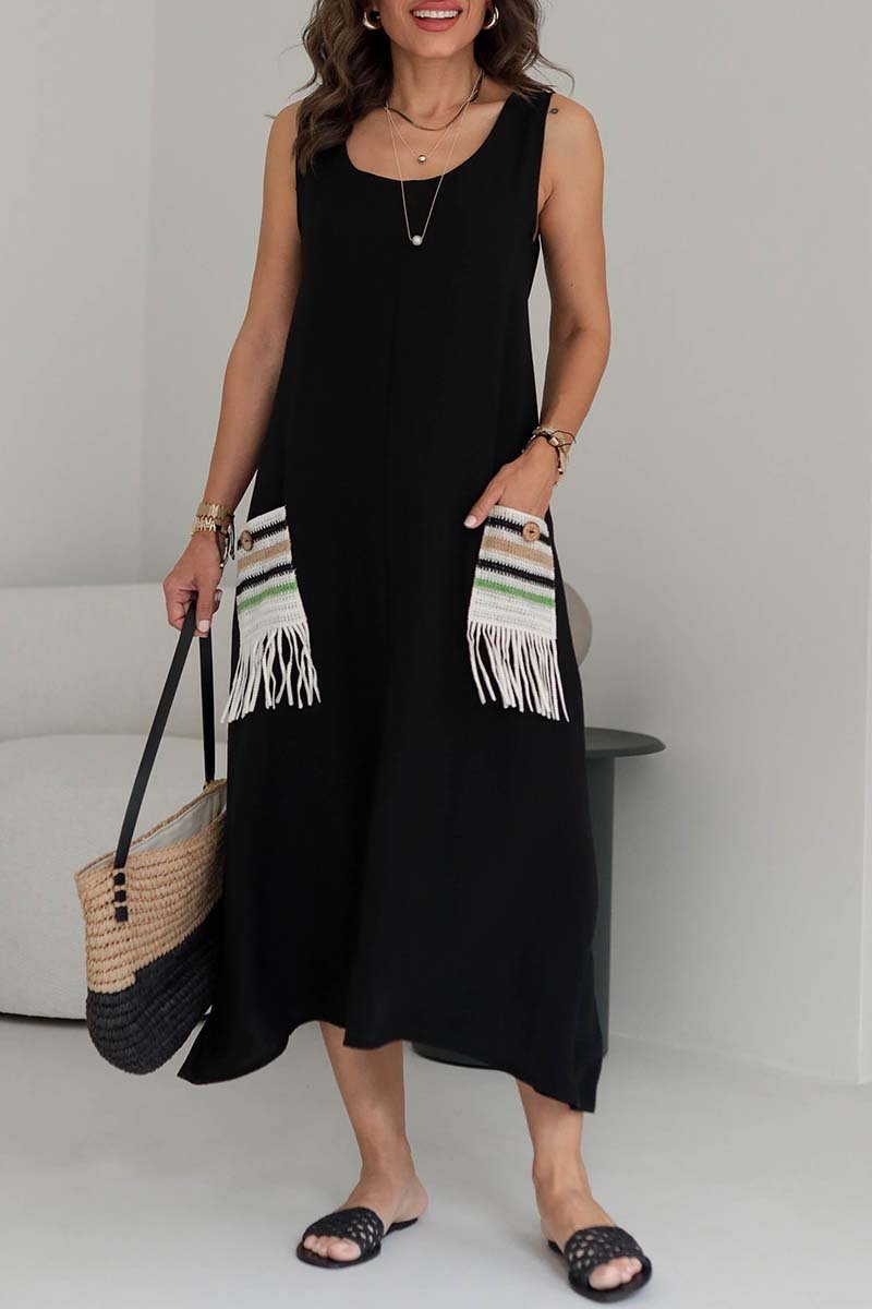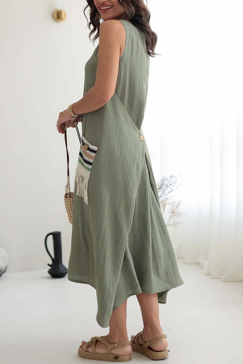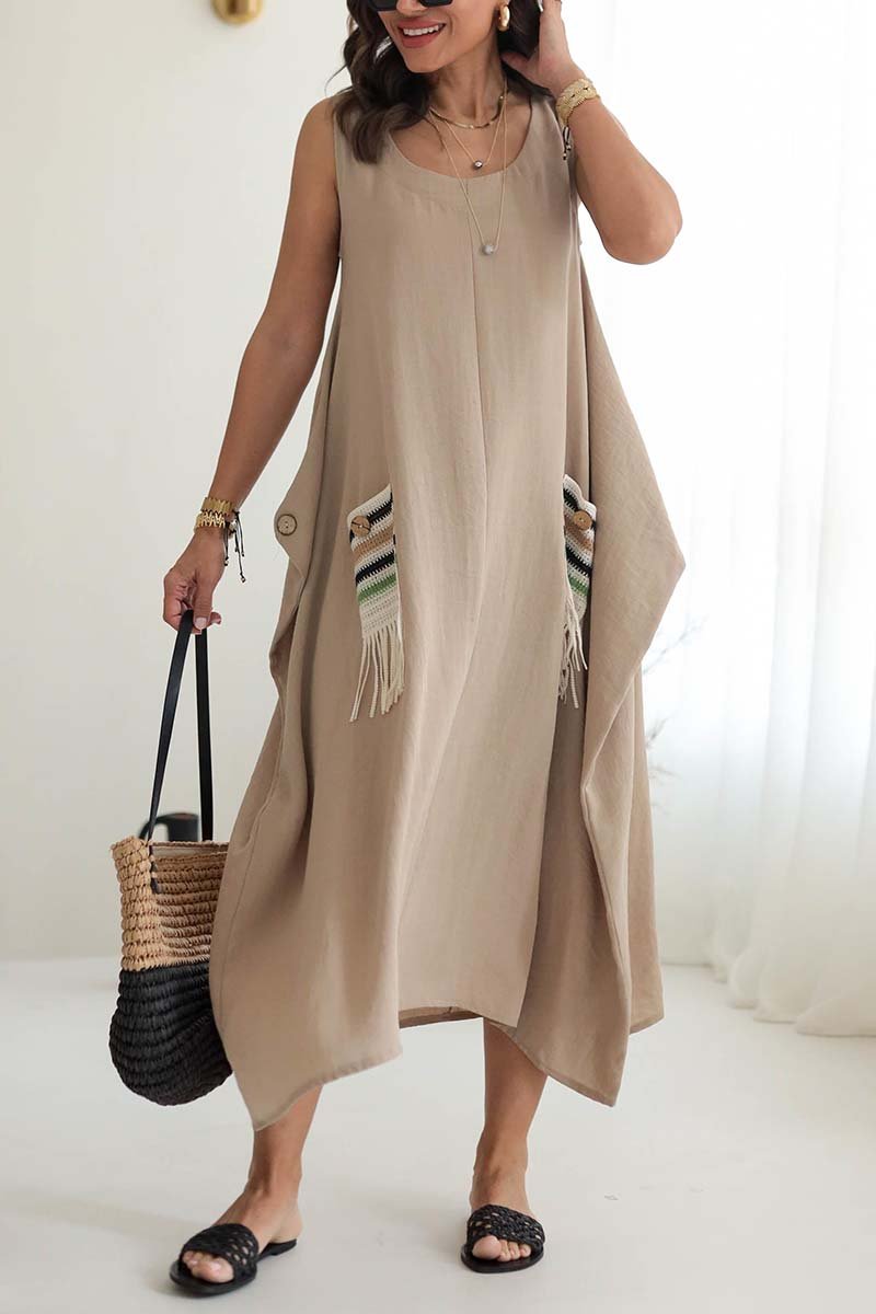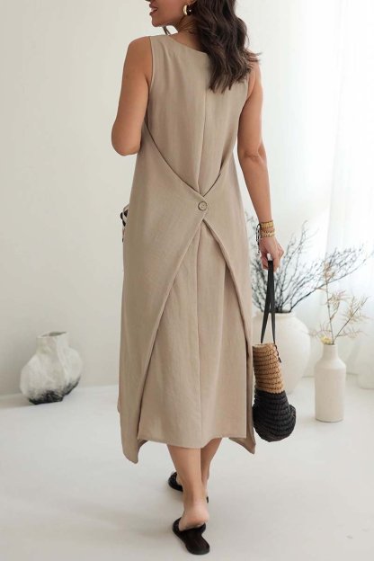 Women's Casual Pocket Patch Wool Sleeveless Dress