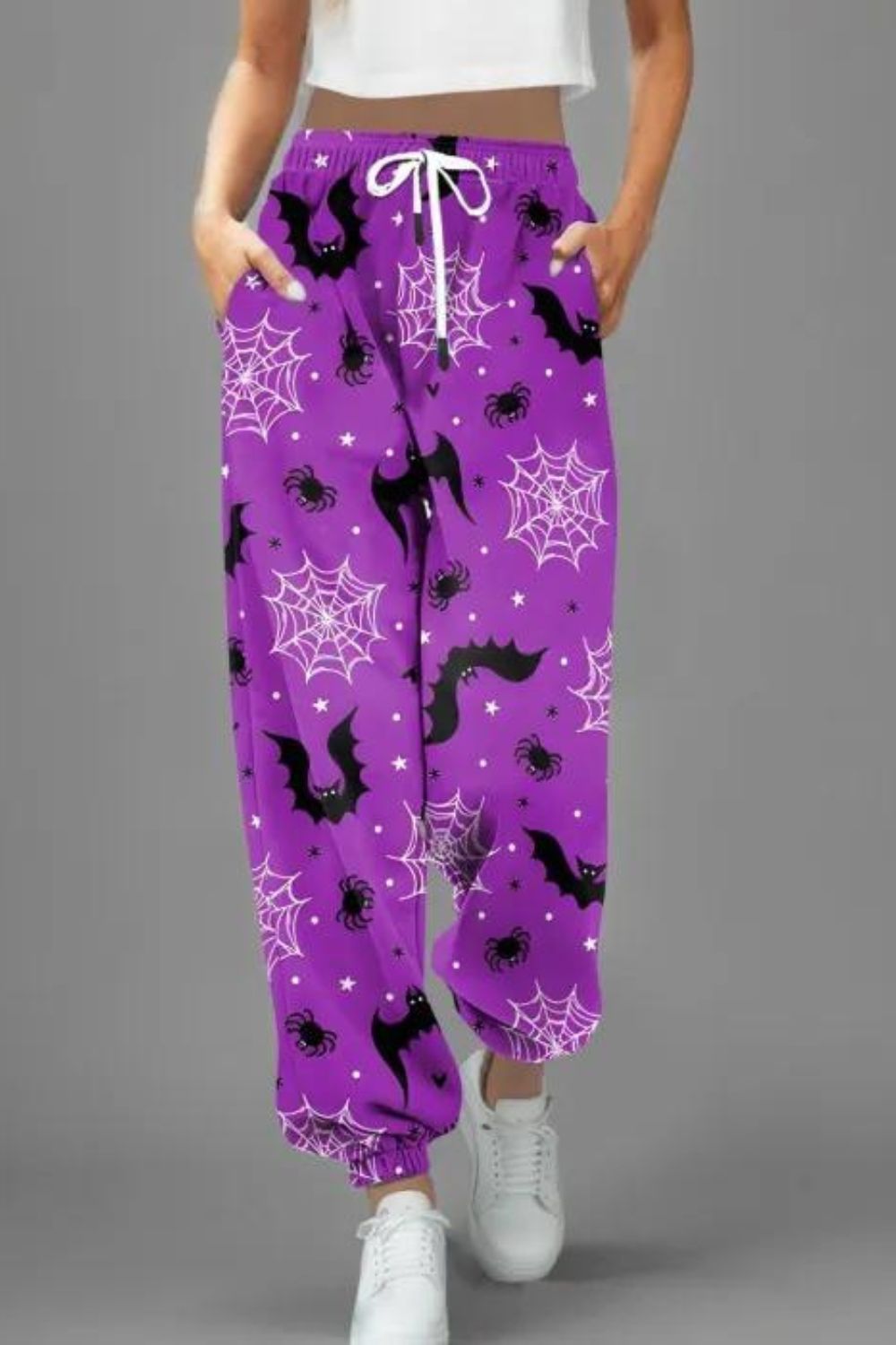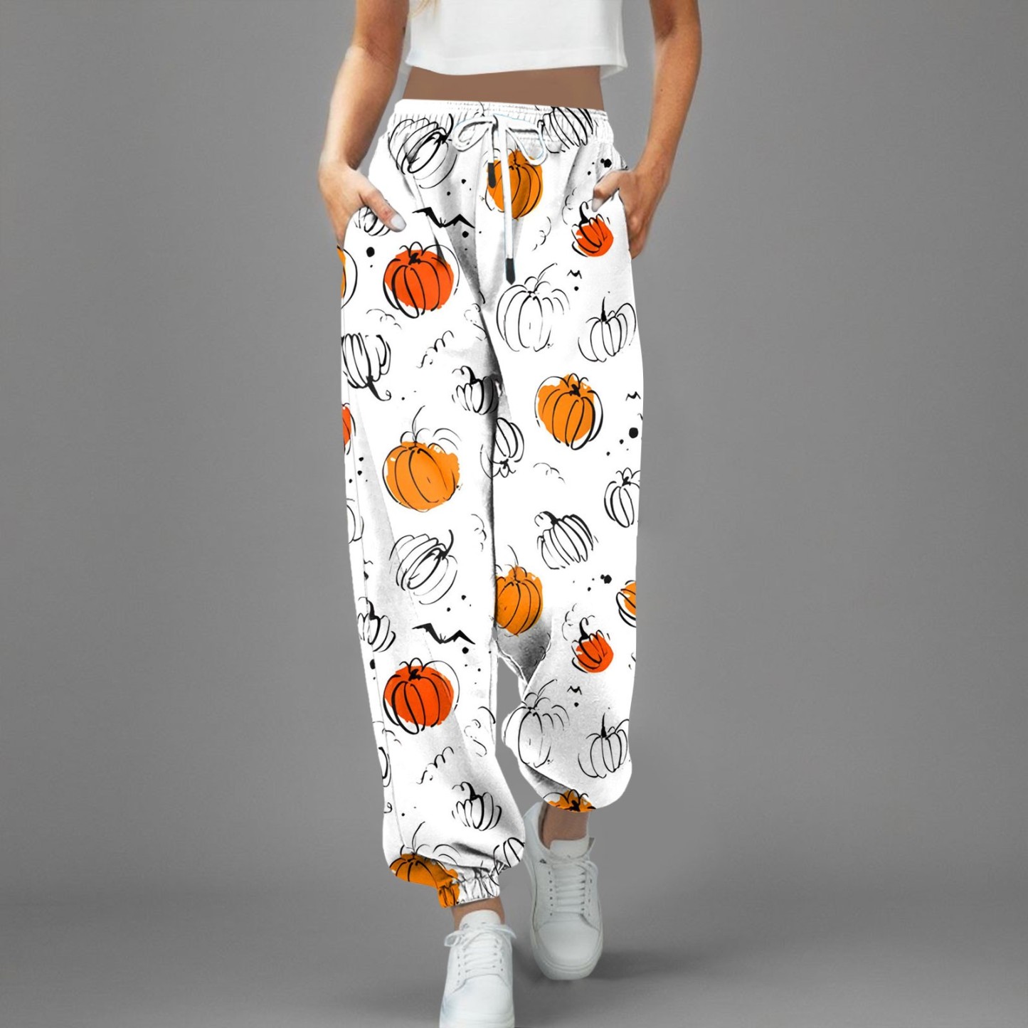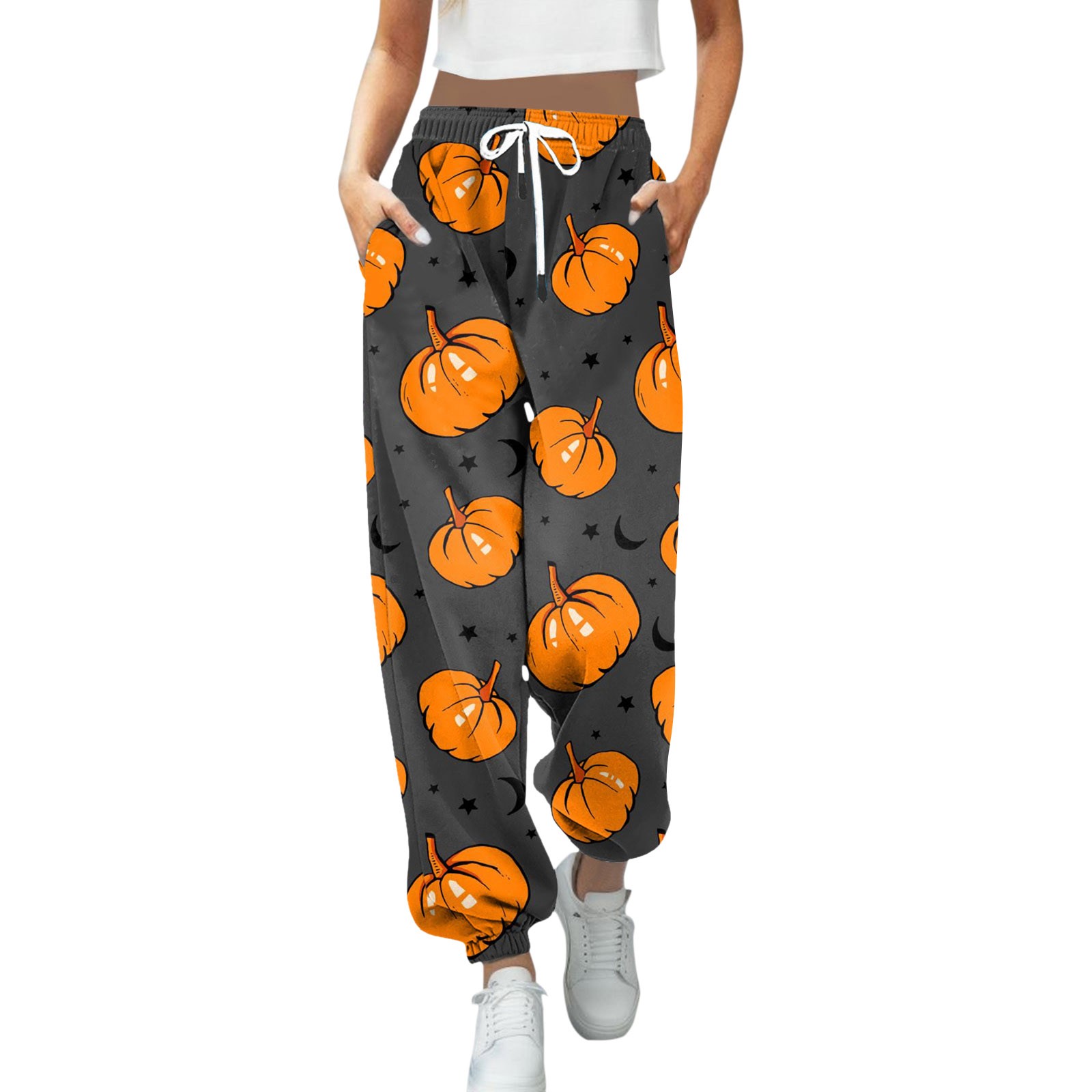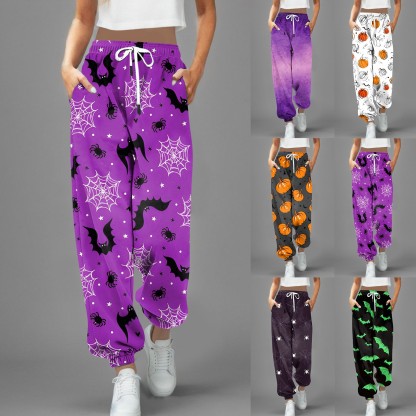 Women's Casual Print Halloween Elastic Waist Loose Pencil Pants