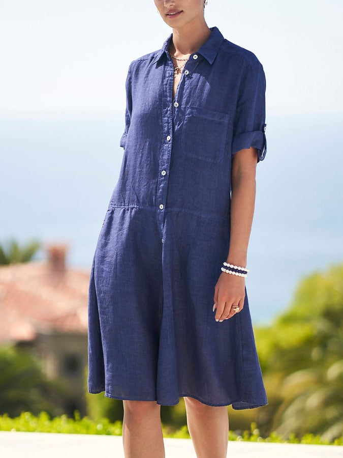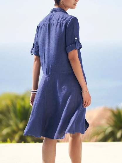 Women's Casual Solid Color Lapel Short Sleeve Button Dress