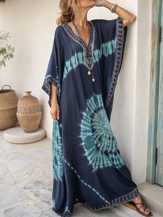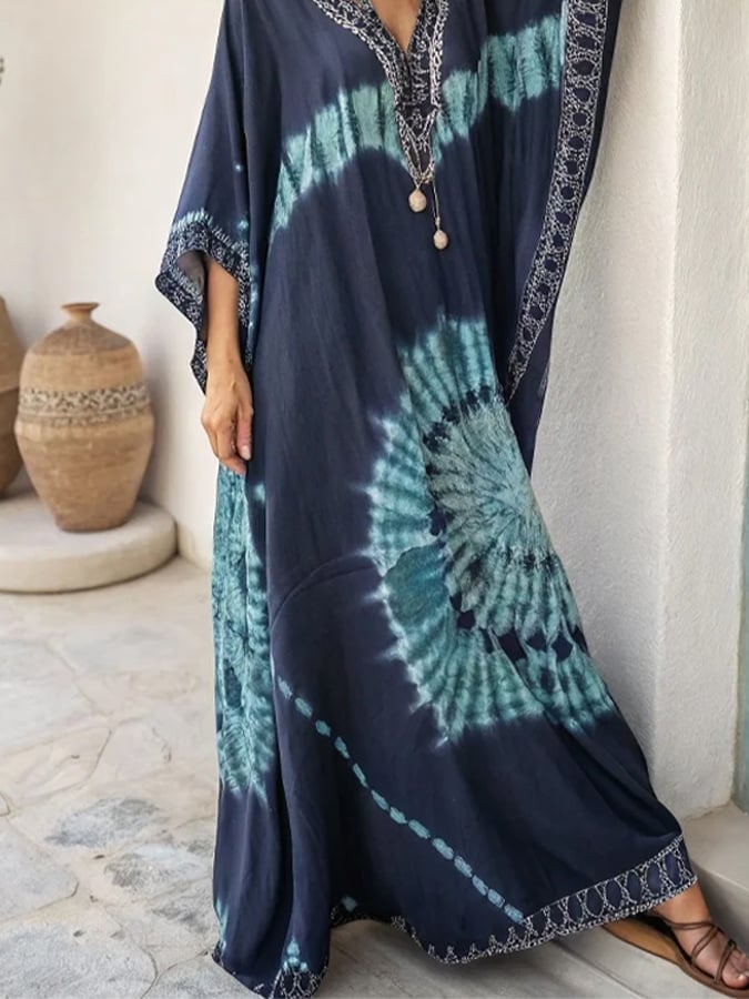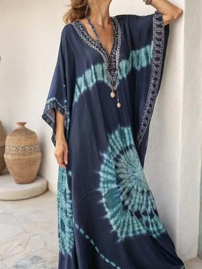 Women's Casual V-Neck Tie-Dye Loose Dress