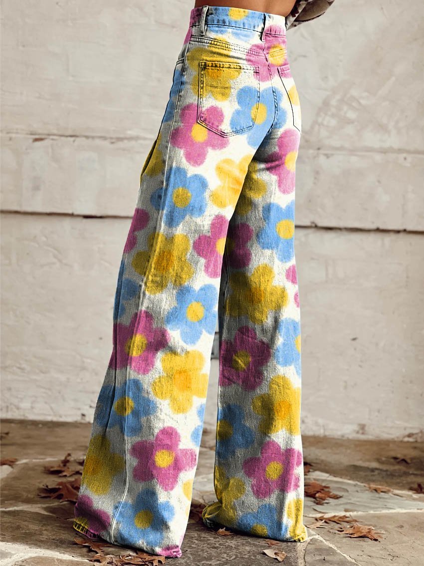 Women's Chroma Daisy Print Casual Wide Leg Pants