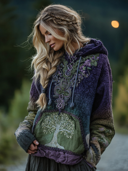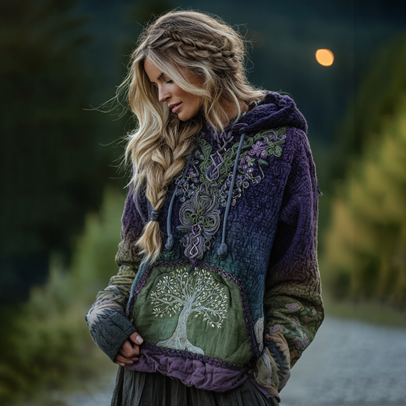 Women's Classic Viking Tree Of Life With Floral Art Gradient Comfort Hoodie
