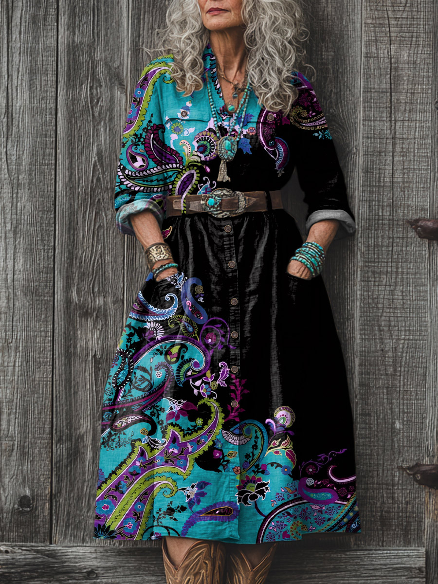 Women's Colorblock Boho Art Pattern Print Dress