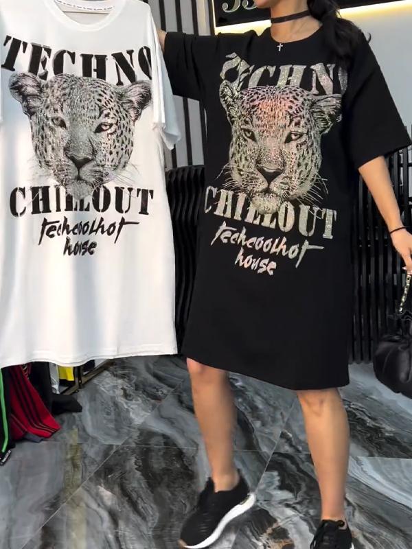 Women's Comfortable Crew Neck Pattern Dress