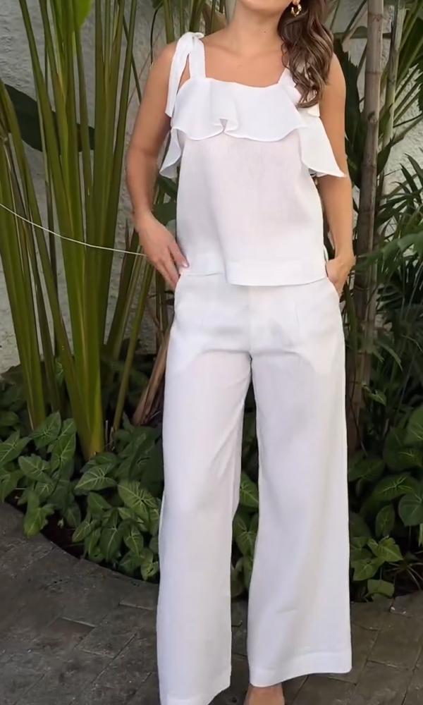 Women's Comfortable Two-Piece Cotton Linen Galter Top And Trousers