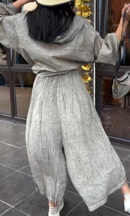 Women's Comfortable Two-Piece Cotton Linen Hooded Top And Trousers