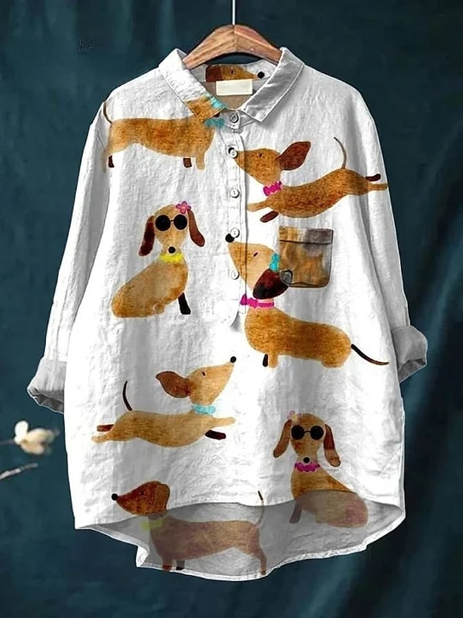 Women's Cute Dog Dachshund Art Printed Casual Shirt