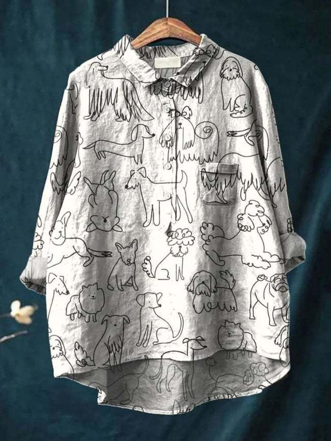 Women's Cute Dogs Print Loose Long Sleeve Top