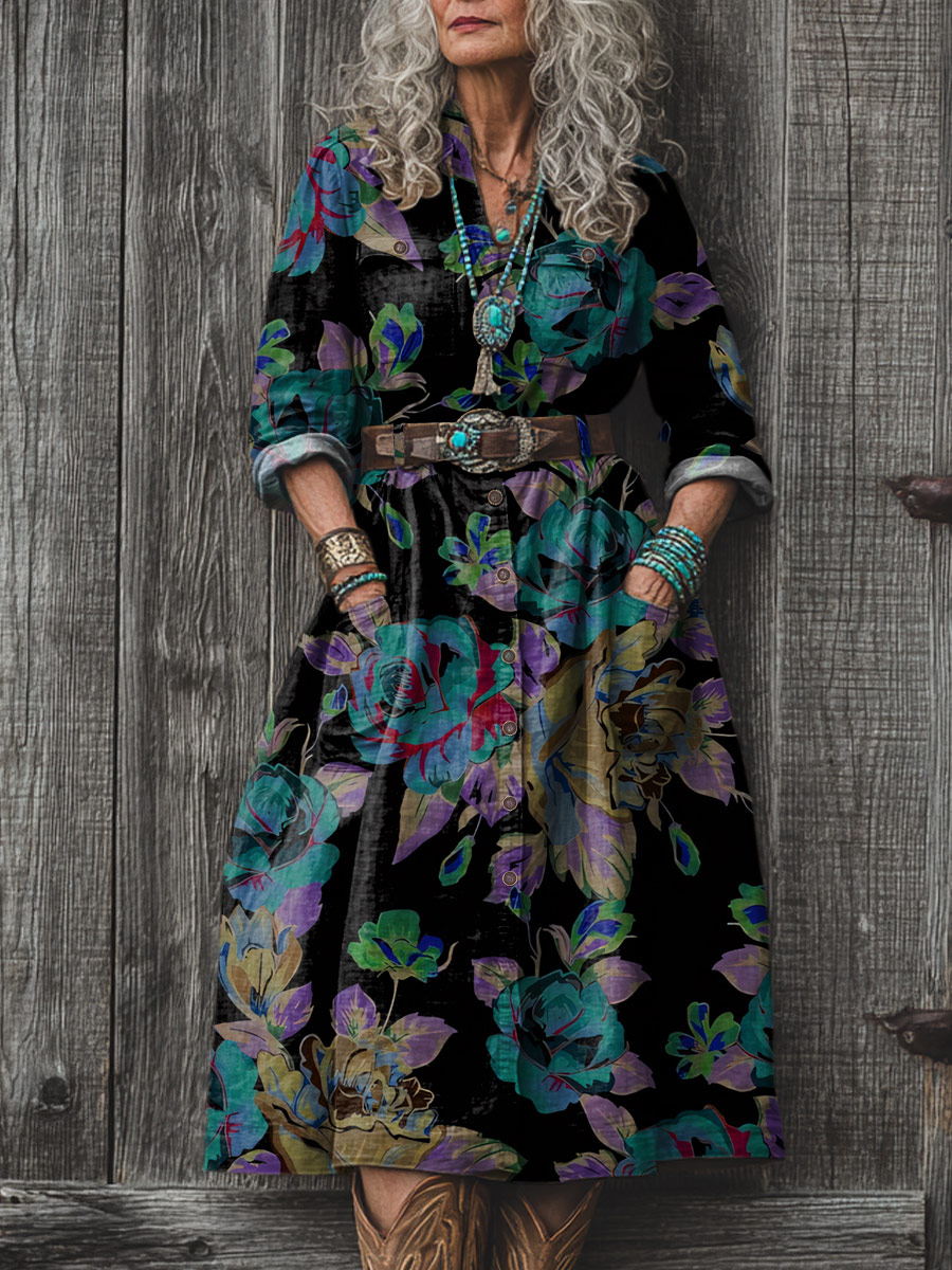 Women's Dark Rose Floral Art Print Dress