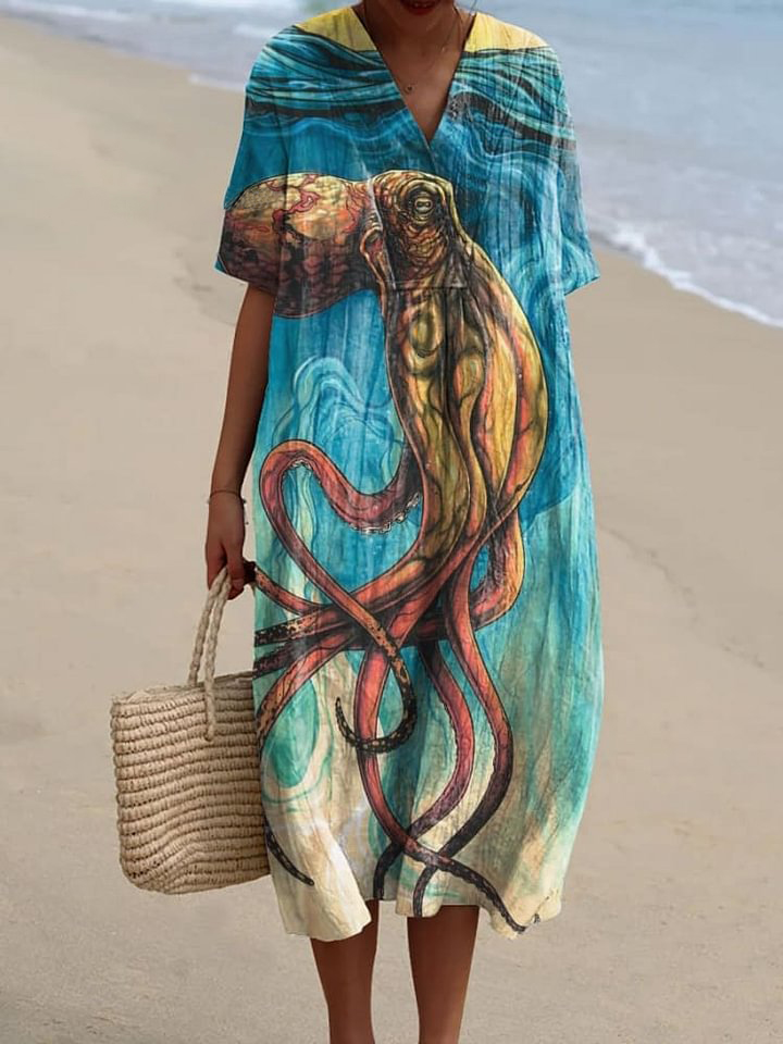 Women's Deep Sea Octopus Art Print Flowy Dress