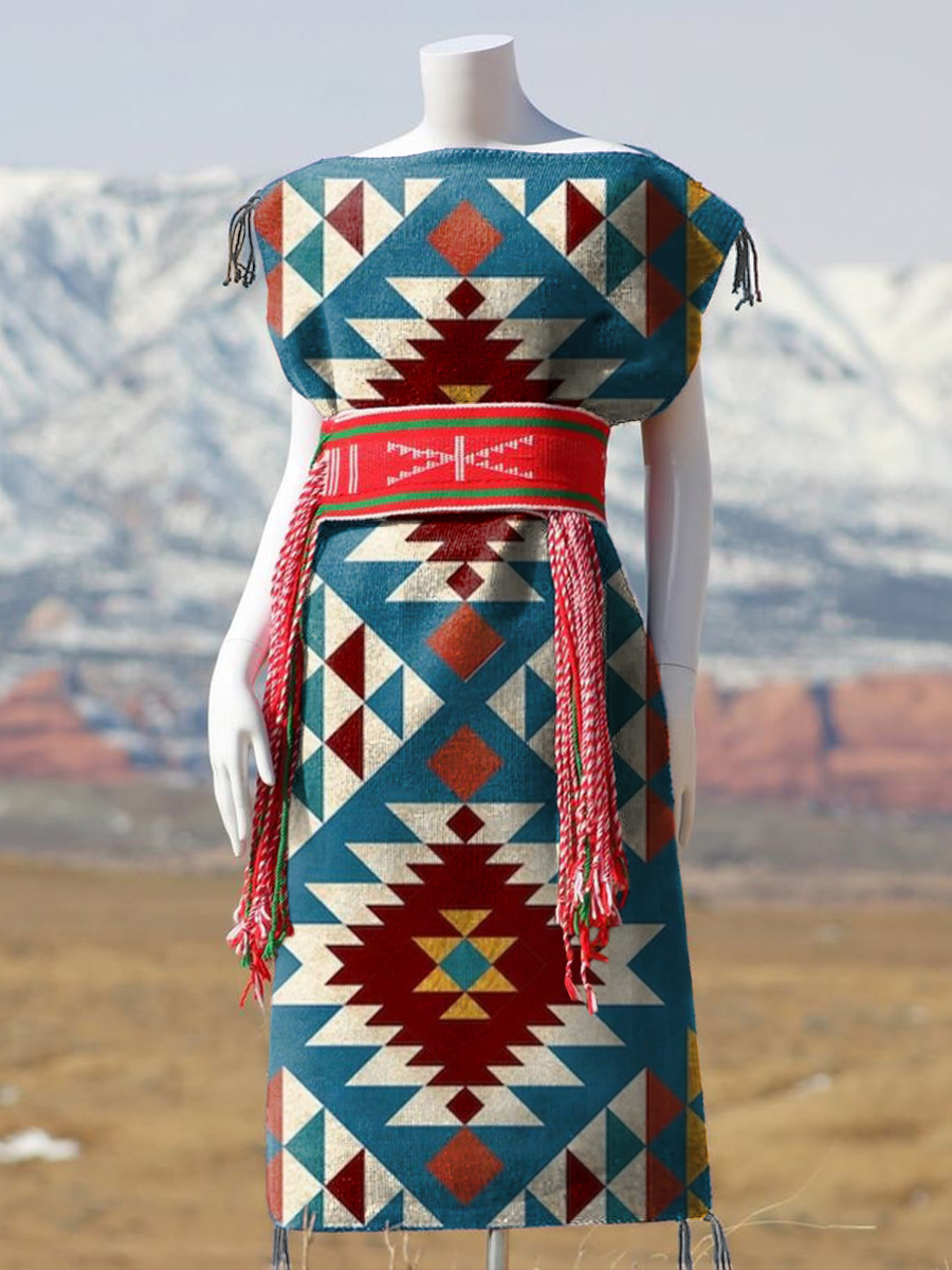 Women's Diamond Retro Pattern Sleeveless Cotton Pocket Wrap V Neck Dress