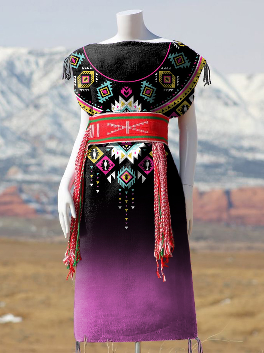 Women's Ethnic Style Colorful Gradient Pattern Print Sleeveless Cotton Pocket Wrap V Neck Dress