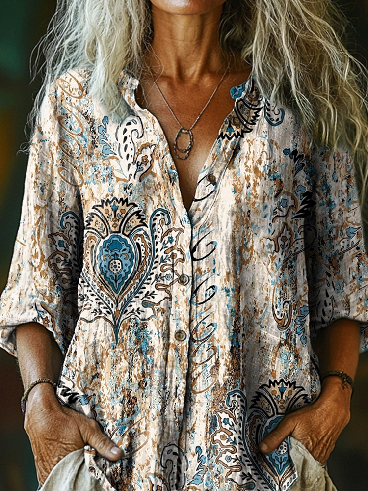 Women's Ethnic Style Tattoo Pattern Art Print Linen Cotton Casual Shirt
