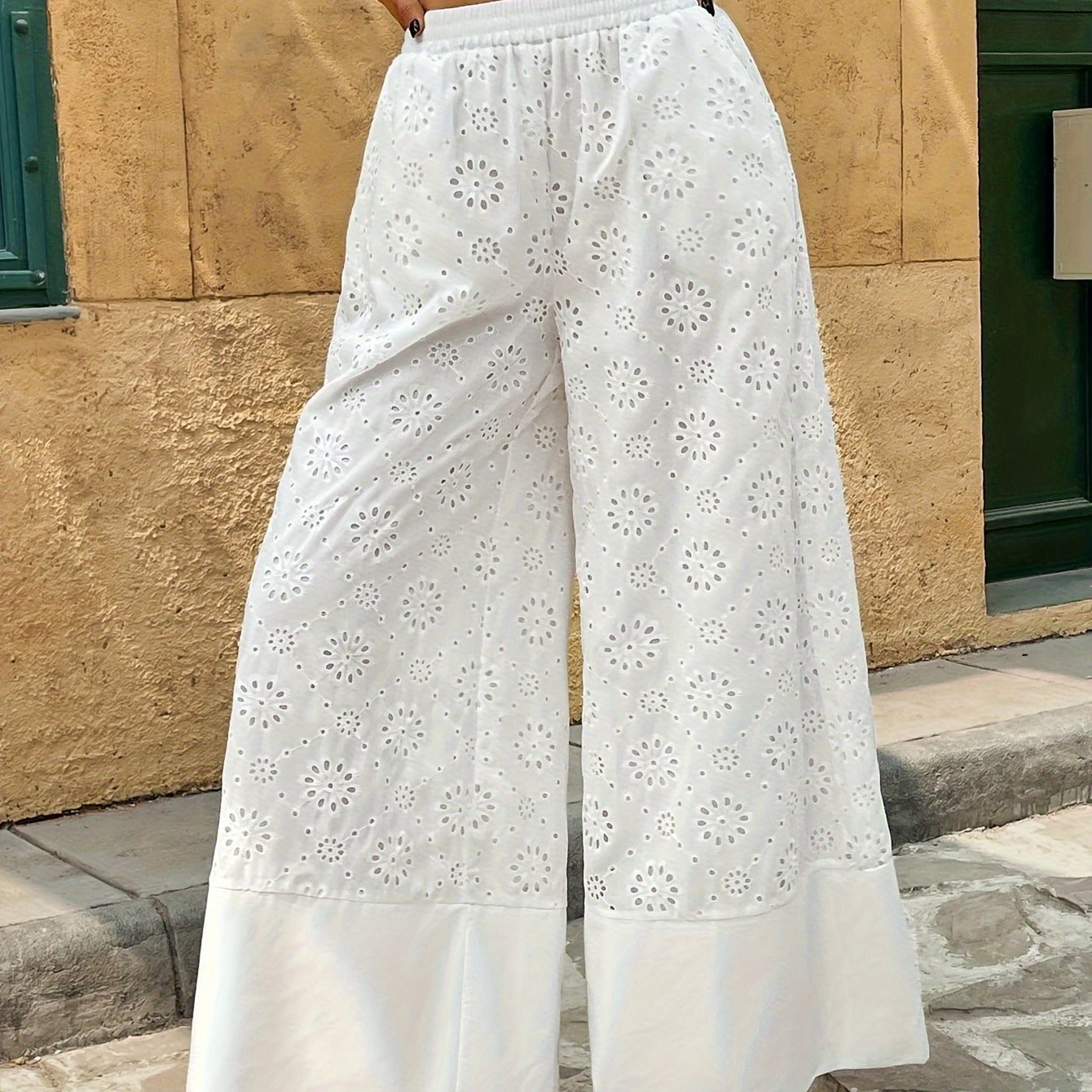 Women's Fashion Elegant Floral-Embellished Wide-Leg Pants