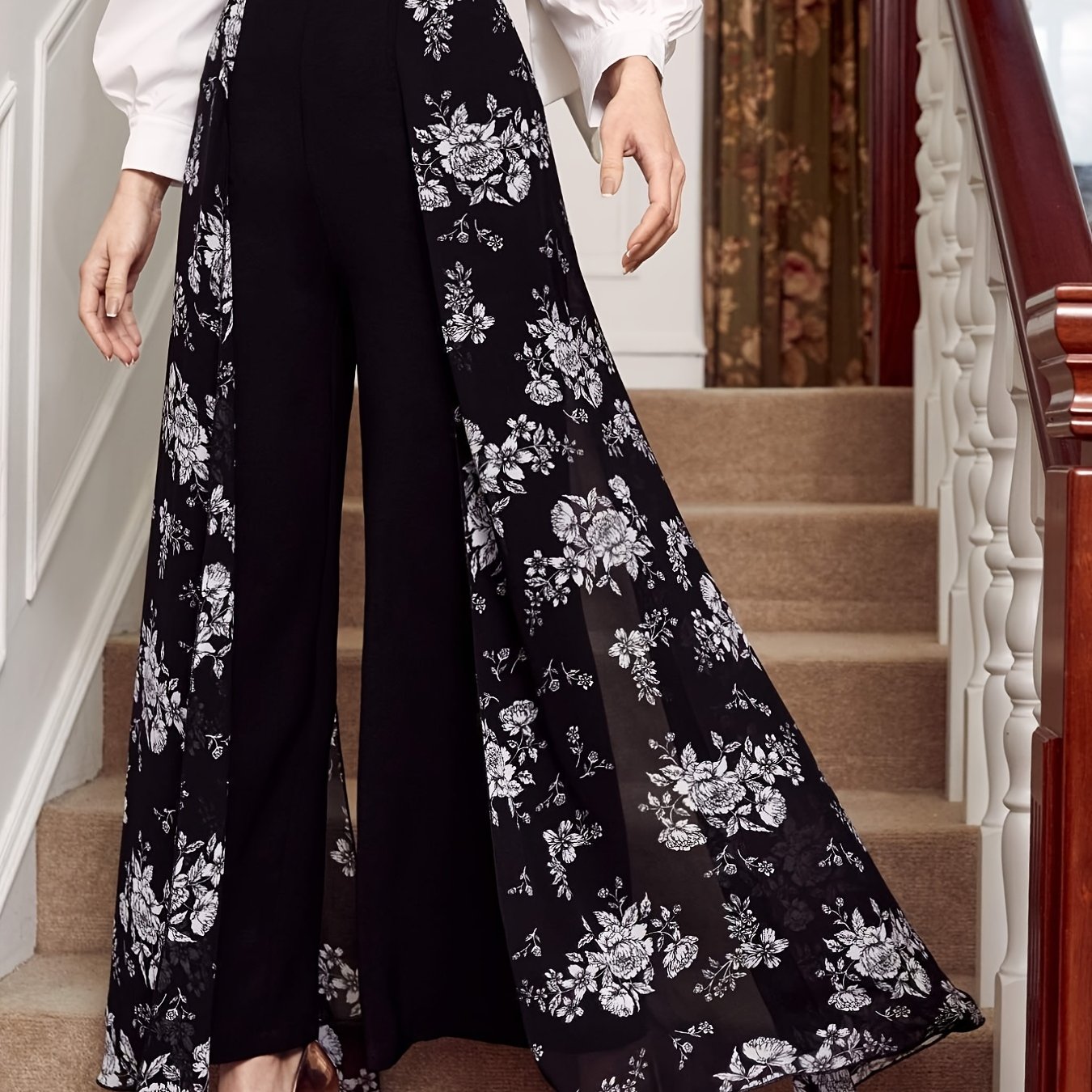Women's Fashion Vintage High Waist Retro Chic Floral Print Flare Leg Pants