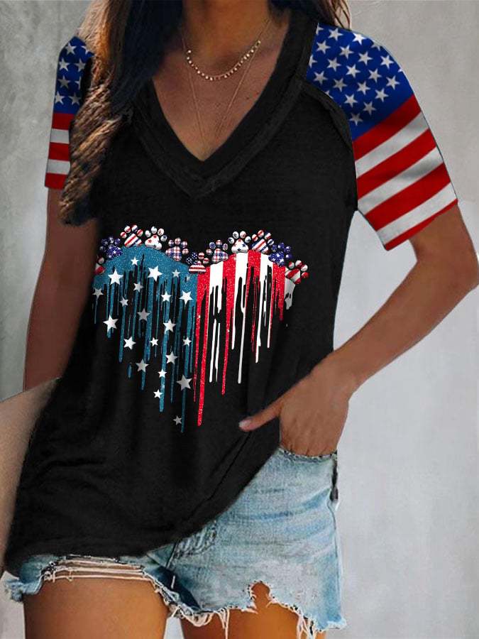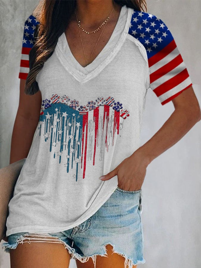 Women's Flag Independence Day Print V-Neck Casual T-Shirt