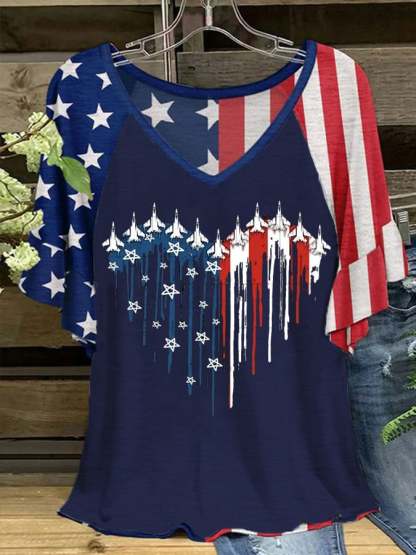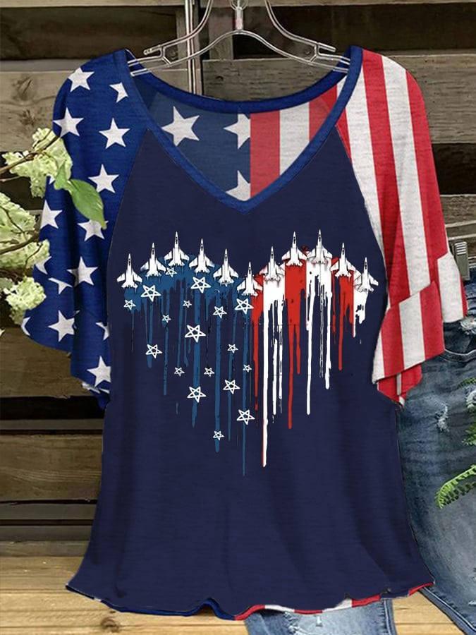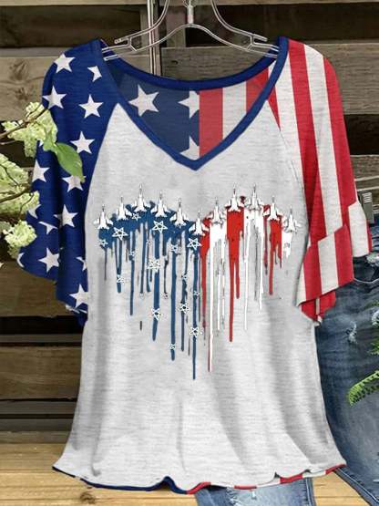 Women's Flag Independence Day Printed Short Sleeve T-Shirt