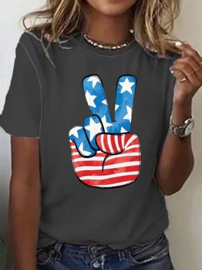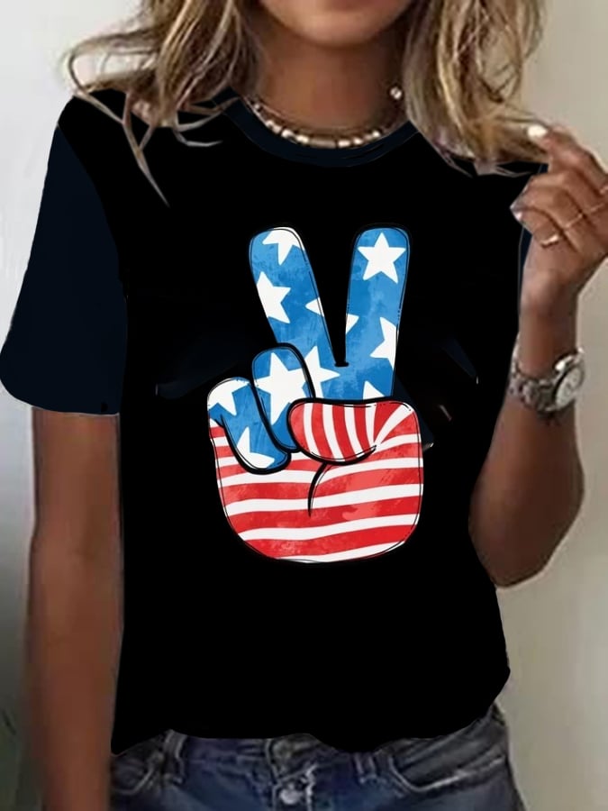 Women's Flag Independence Day Printed T-Shirt