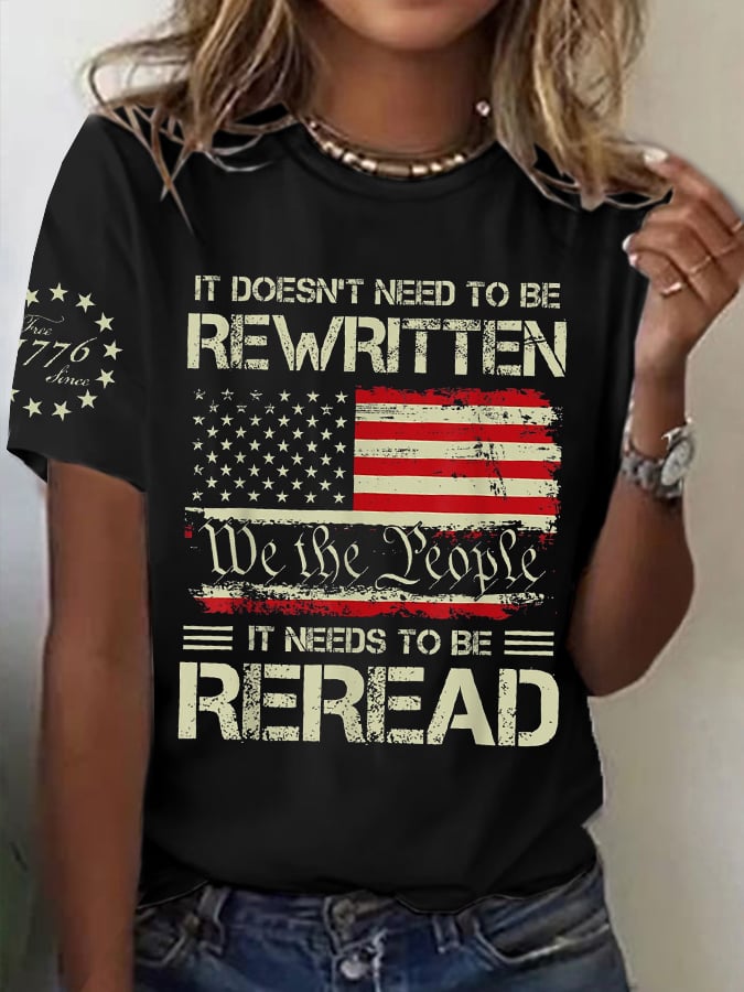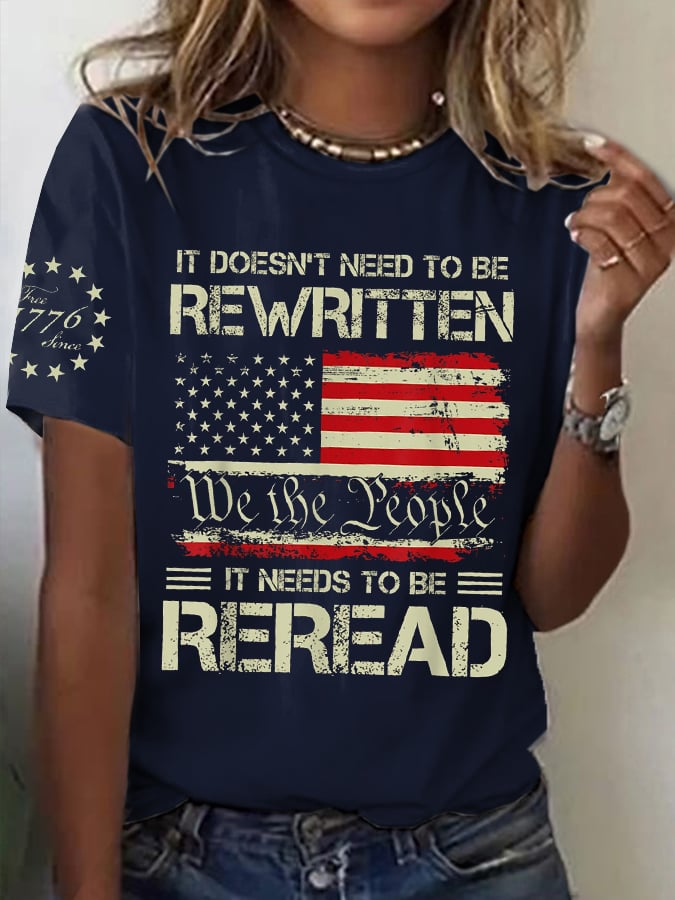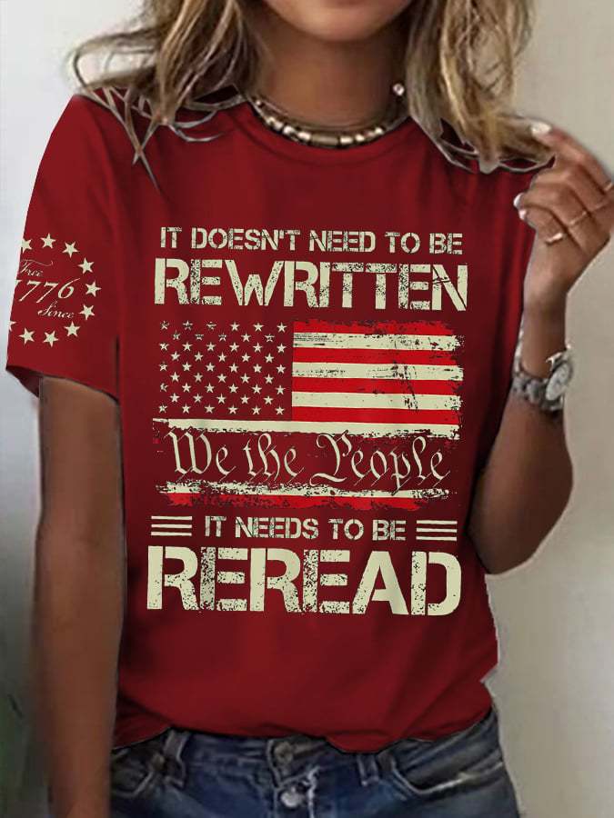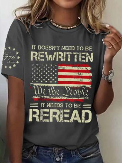Women's Flag It Doesn't To Be Rewritten It Needs To Be Reread Print Casual T-Shirt