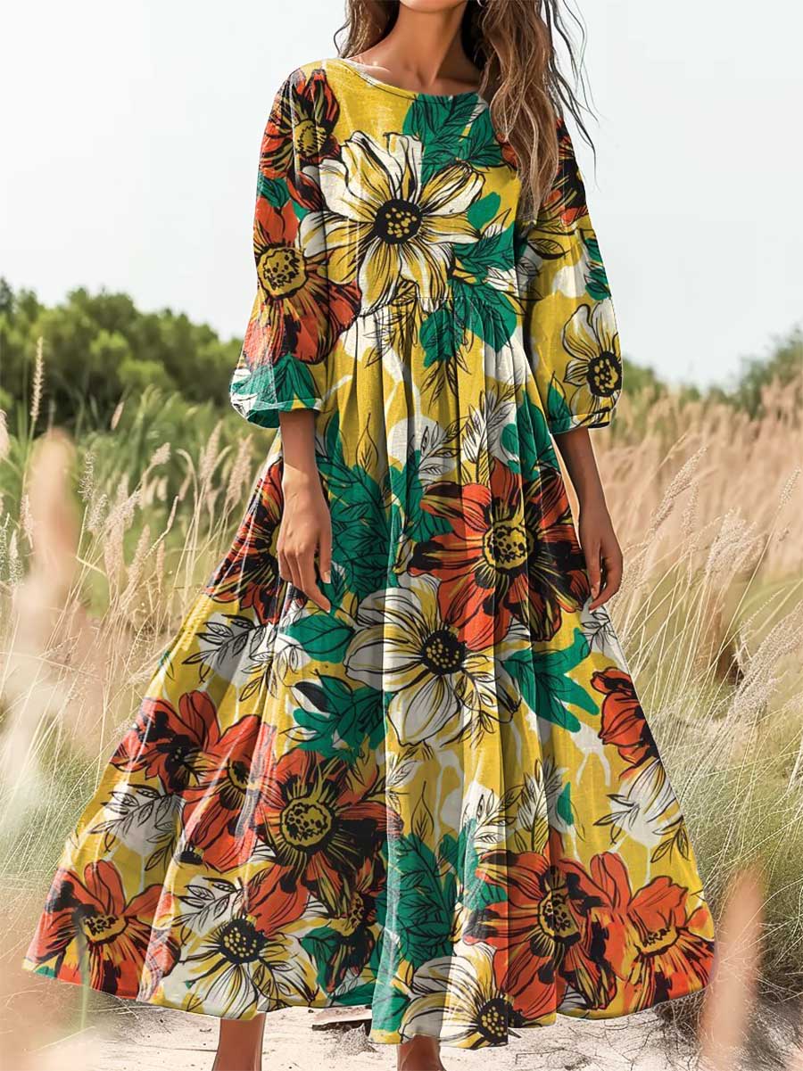 Women's Floral Art Print Cotton Crew Neck Dress