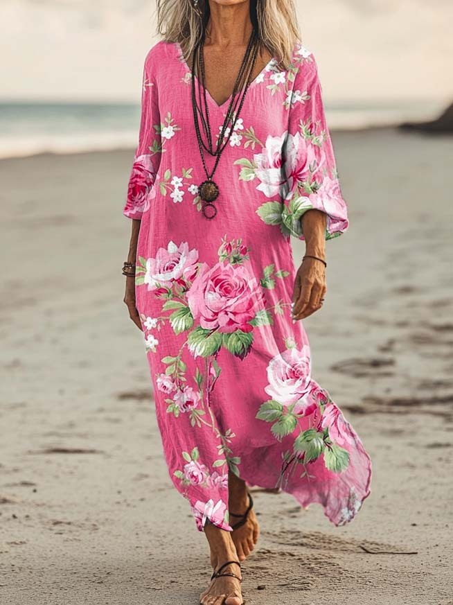 Women's Floral Art Print Pocket Cotton Dress