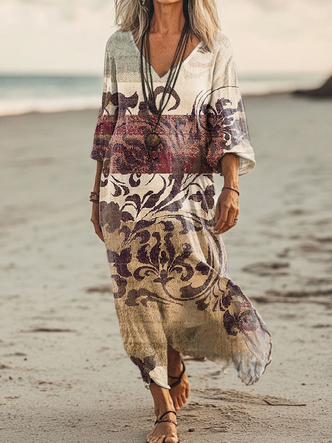 Women's Floral Embellished Pattern Art Print Pocket Cotton Dress