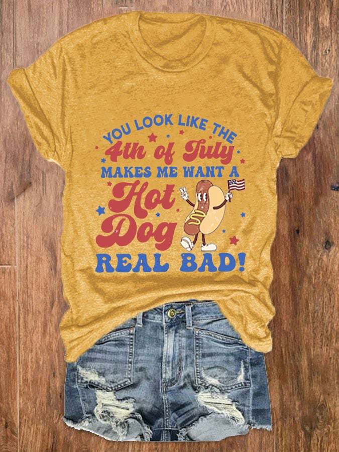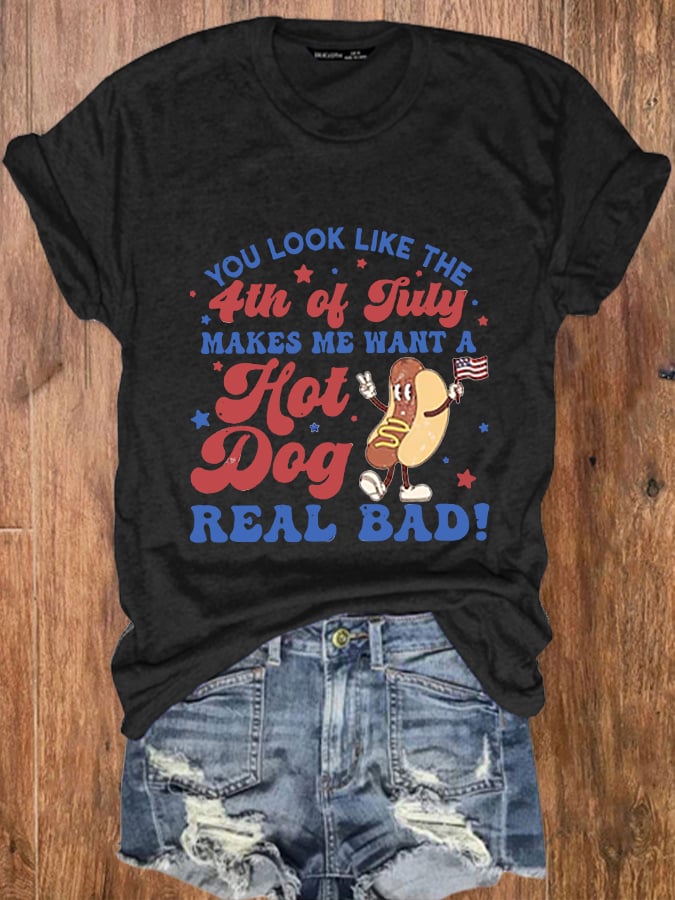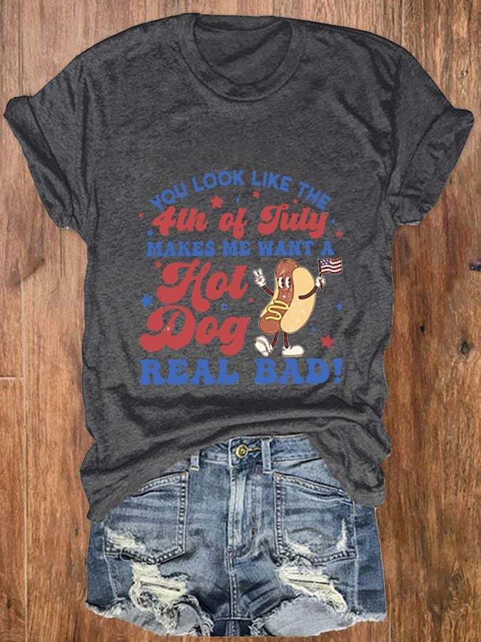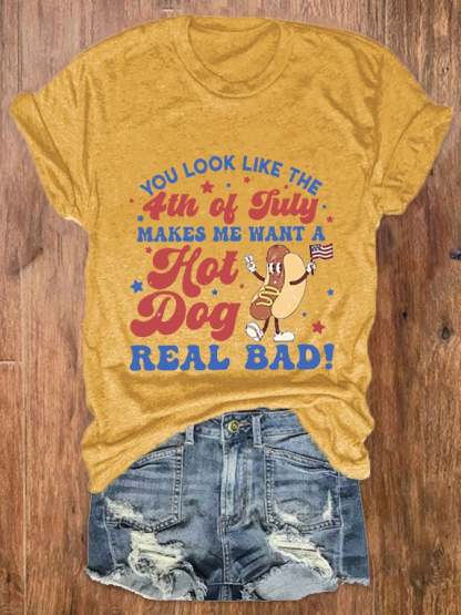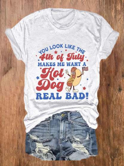Women's Funny 4th July You Look Like The 4th Of July, Makes Me Want A Hot Dog Real Bad Casual Tee