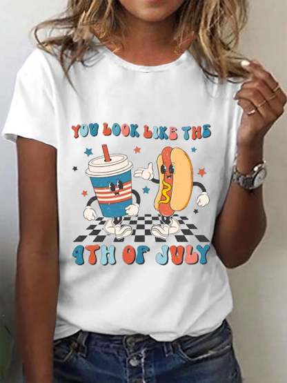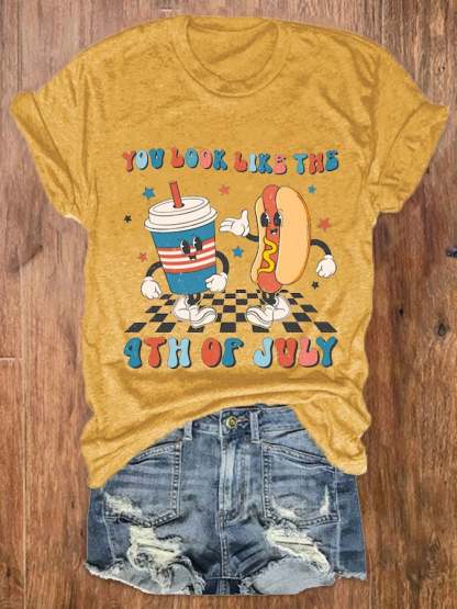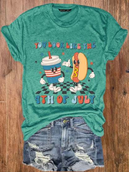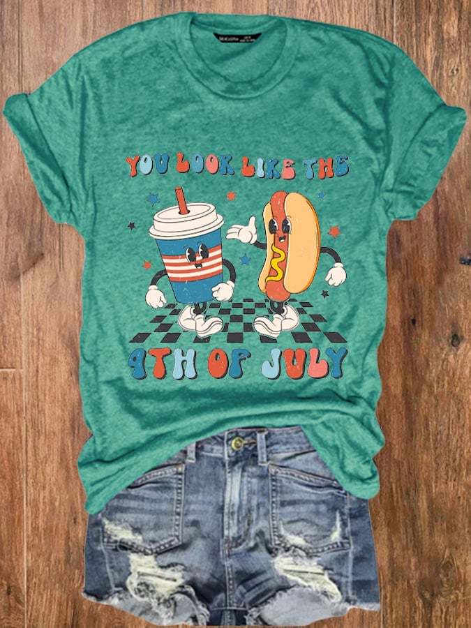 Women's Funny 4th July You Look Like The 4th Of July, Makes Me Want A Hot Dog Real Bad Casual Tee