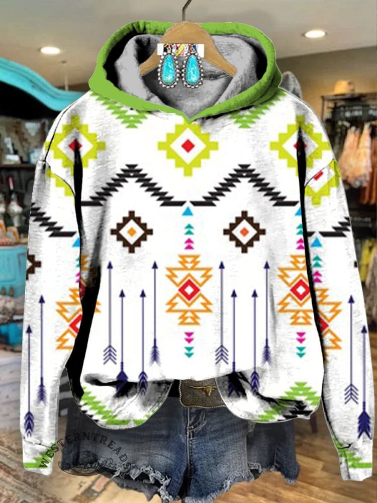 Women's Green Vintage Aztec Print Casual Sweatshirt