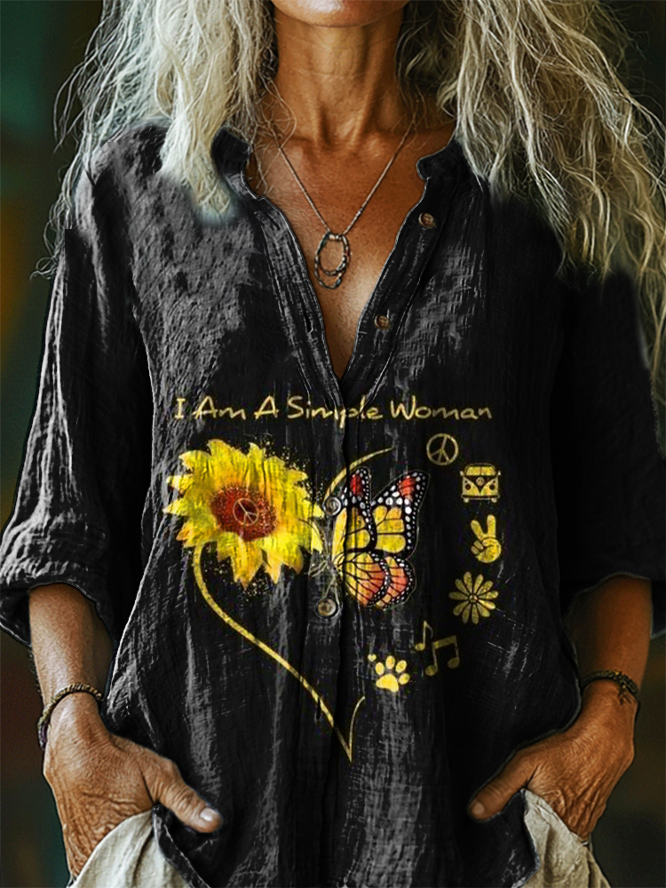 Women's Hippie I Am A Simple Woman Art Print Casual Cotton Linen Shirt