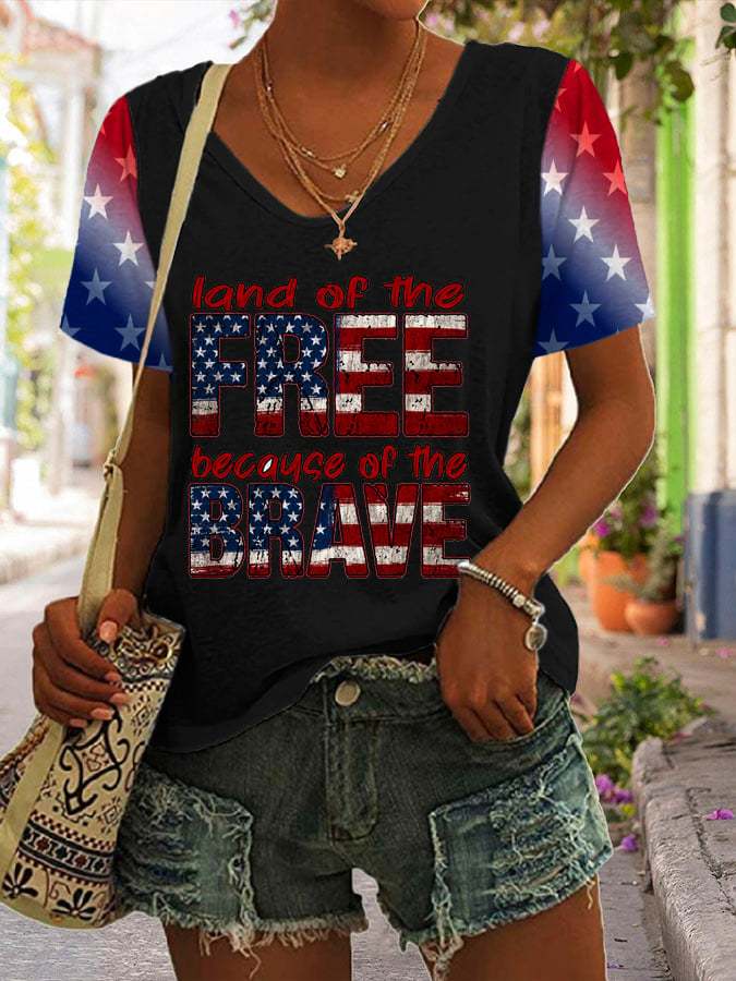 Women's Home Of The Free Because Of The Brave Print V Neck T-shirt