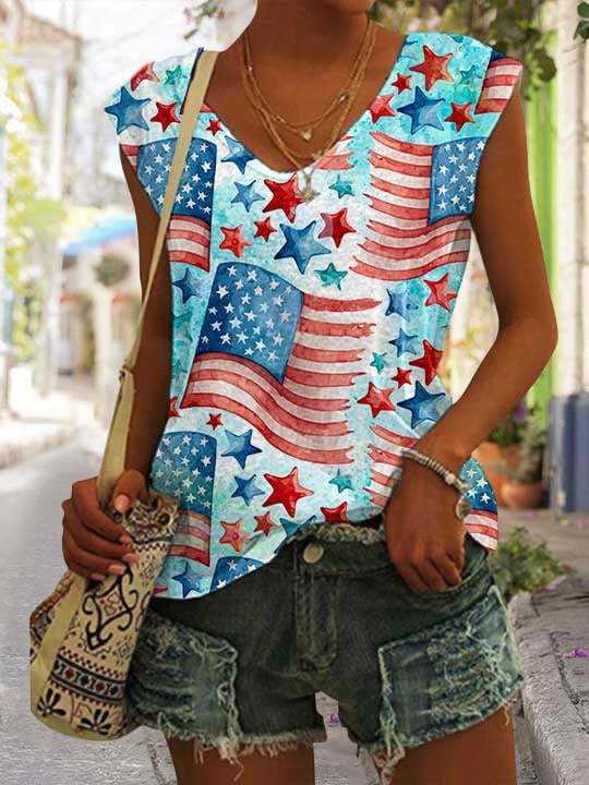 Women's Independence Day Flag Print Sleeveless T-Shirt