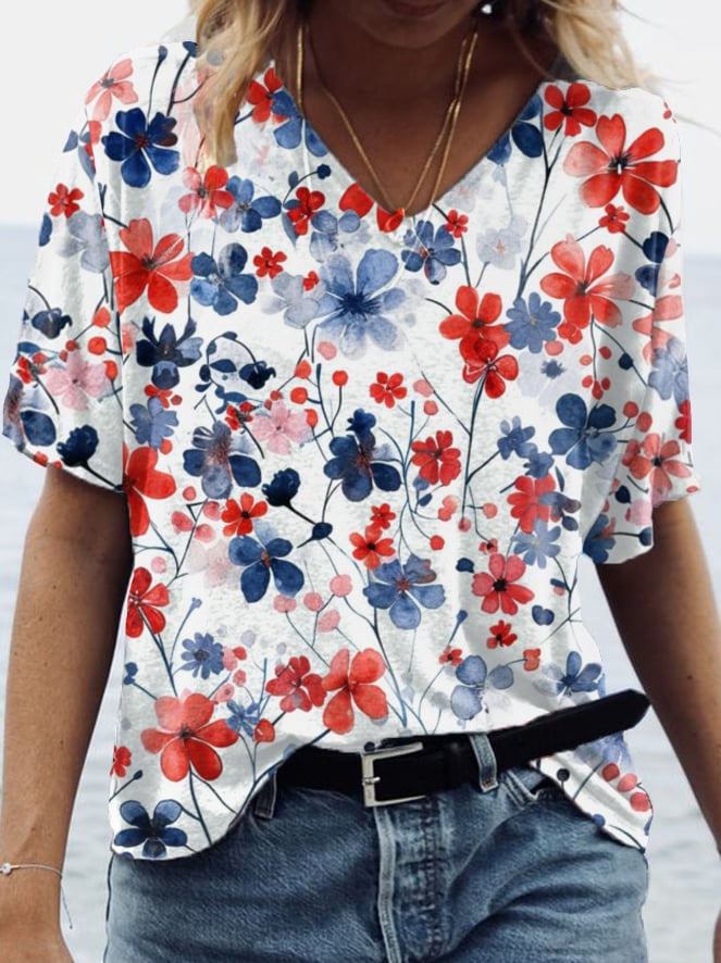 Women's Independence Day Floral Print T-Shirt