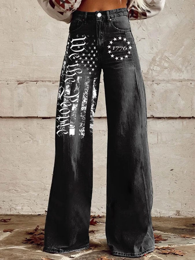 Women's Independence Day We The People Print Casual Bootcut Trousers