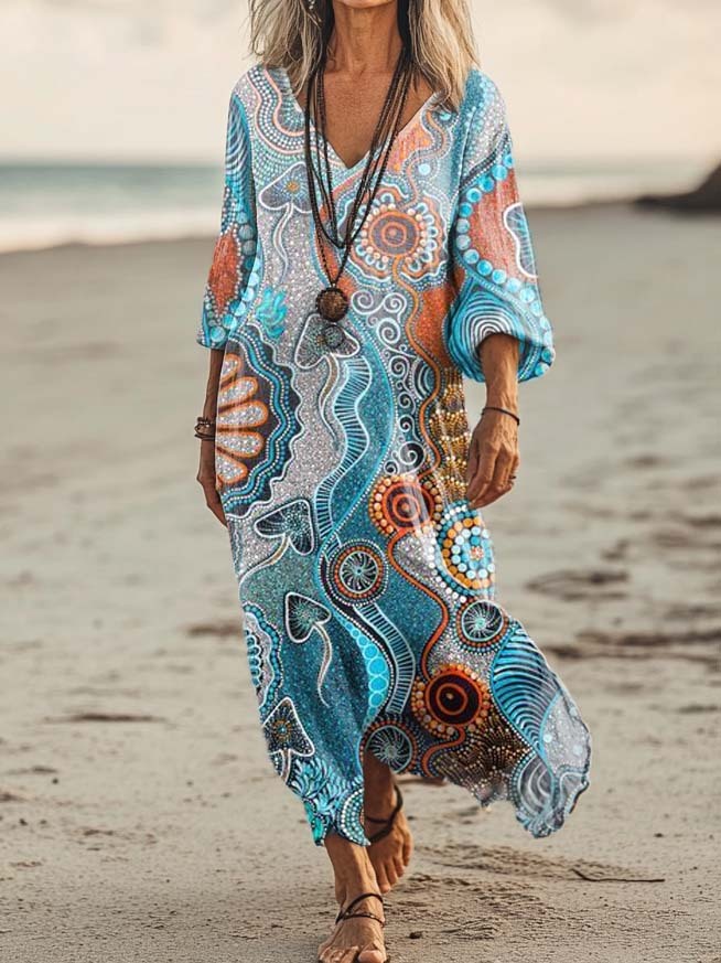 Women's Irregular Pattern Art Print Pocket Cotton Dresses