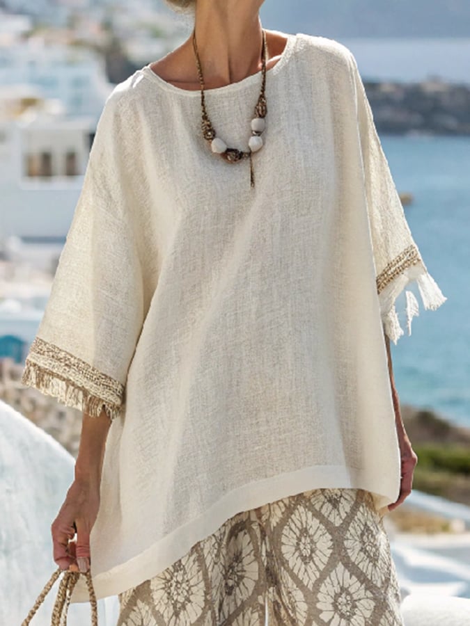 Women'S Loose Casual Tassel Print Elastic Waist Pants Set