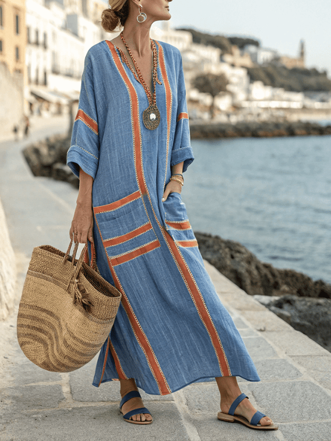 Women'S Loose Contrast Striped Dress