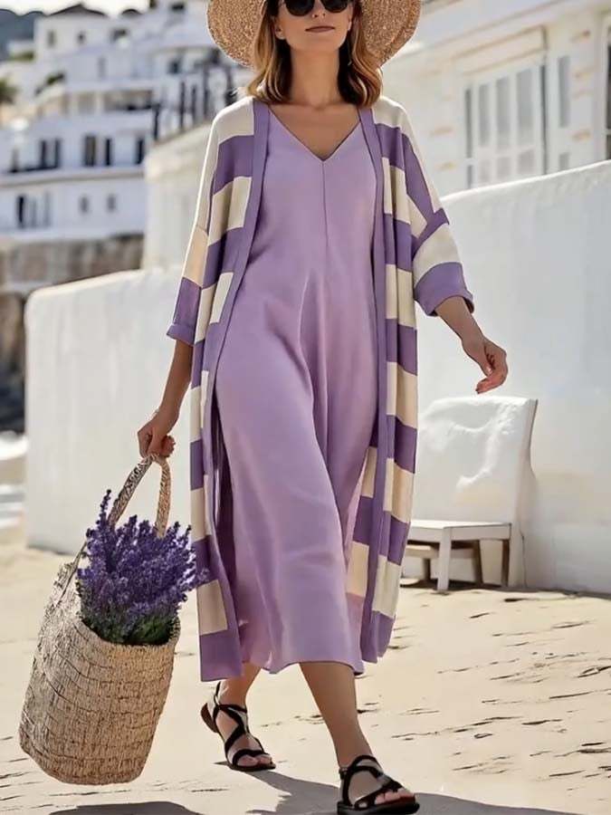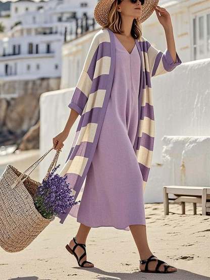Women's Loose Striped Jacket Dress Two-Piece Set