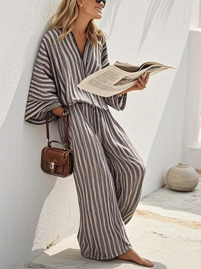 Women'S Loose Striped Pants Suit