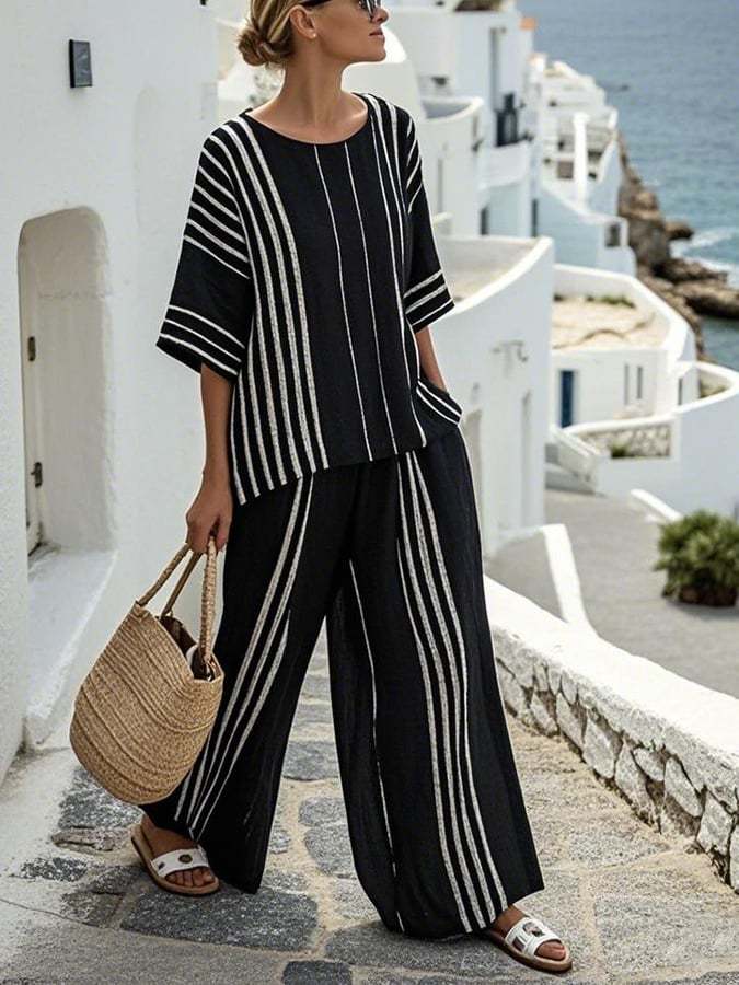 Women'S Loose Striped Pants Suit