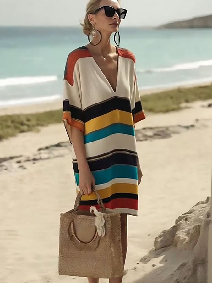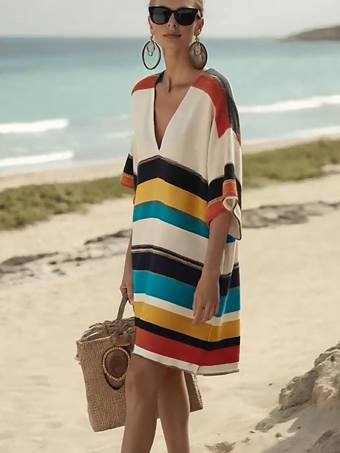 Women'S Loose Striped Print Dress