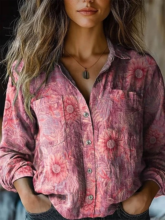 Women's Lovely Floral Pattern Art Print Casual Long Sleeve Comfortable Cotton Shirt