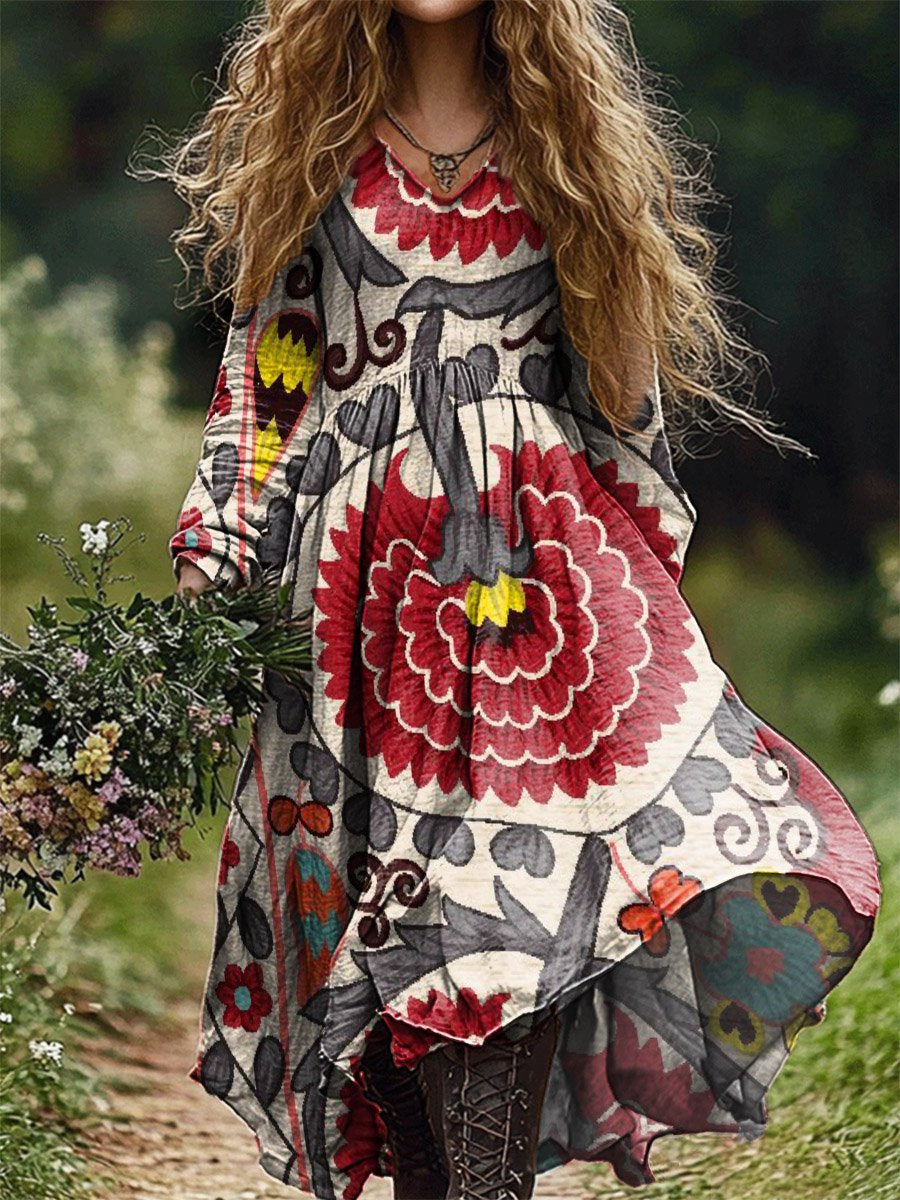 Women's Moroccan Flowers Print Pocket Cotton Dress