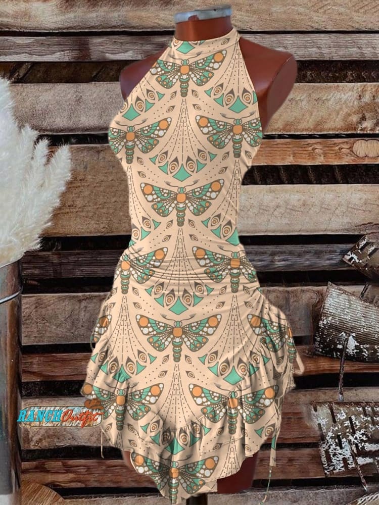 Women's Moth Print Halter Neck Dress