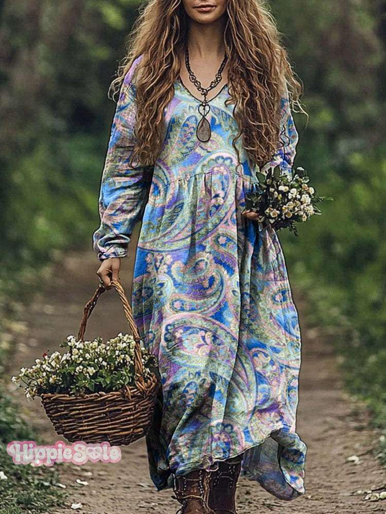 Women's Paisley Floral Art Print Pocket Cotton Dress