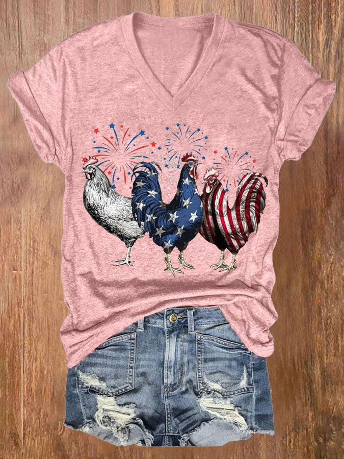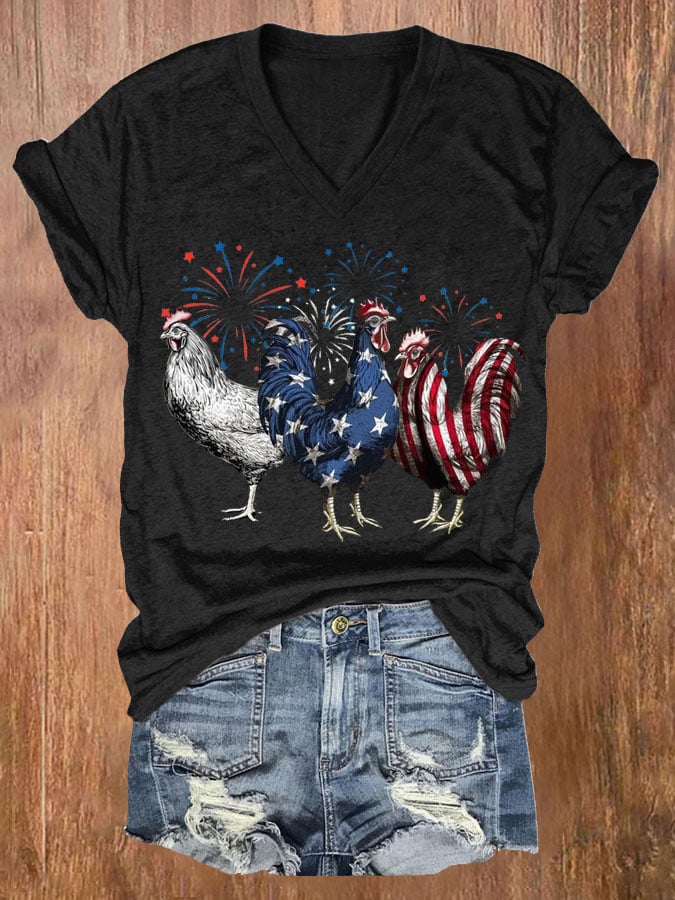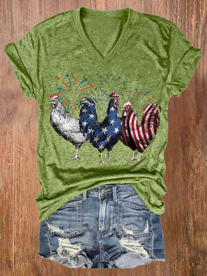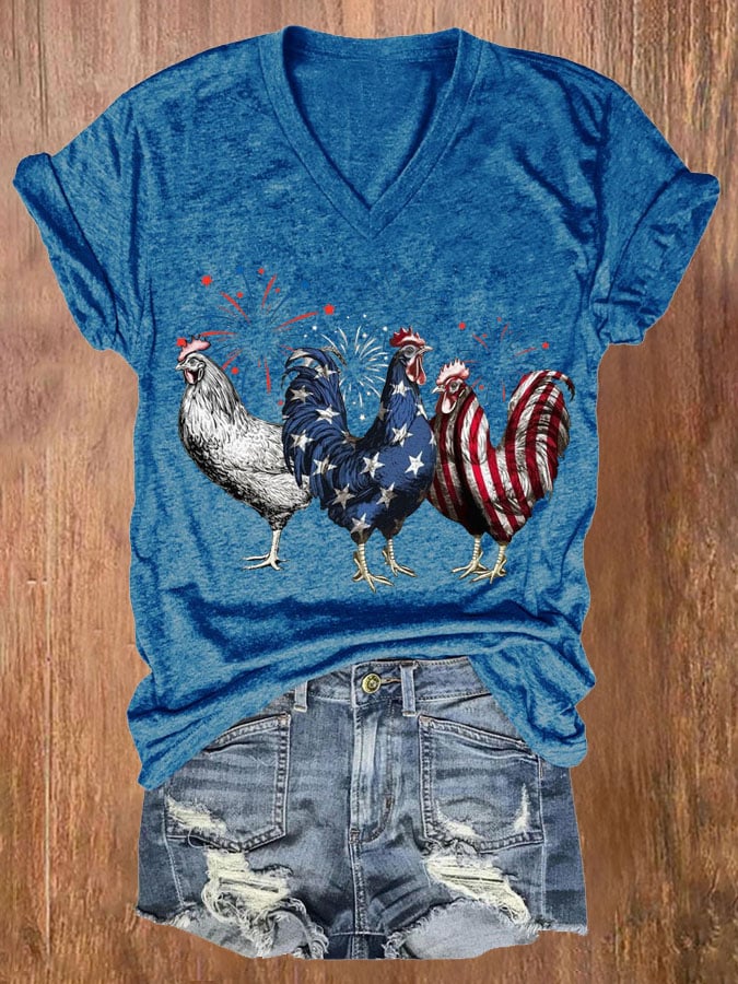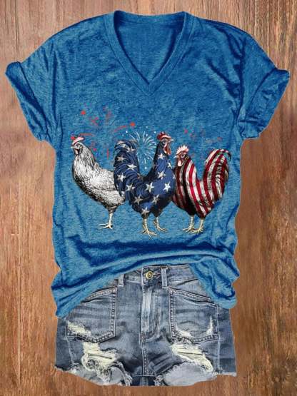 Women's Patriotic USA Chicken Print Casual T-shirt