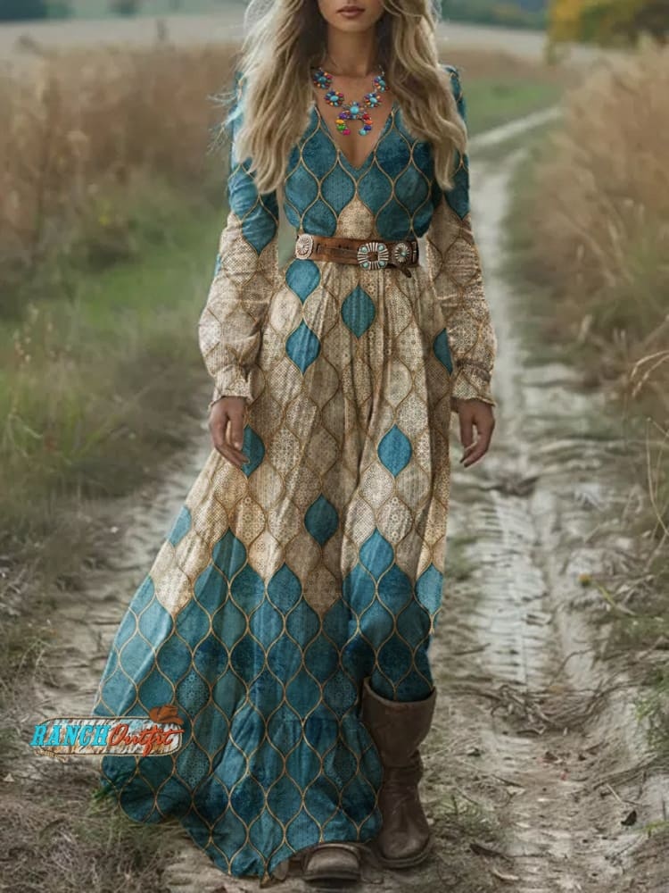 Women's Retro Ellipse Gradient Pattern Art Print Pocket Cotton Dress