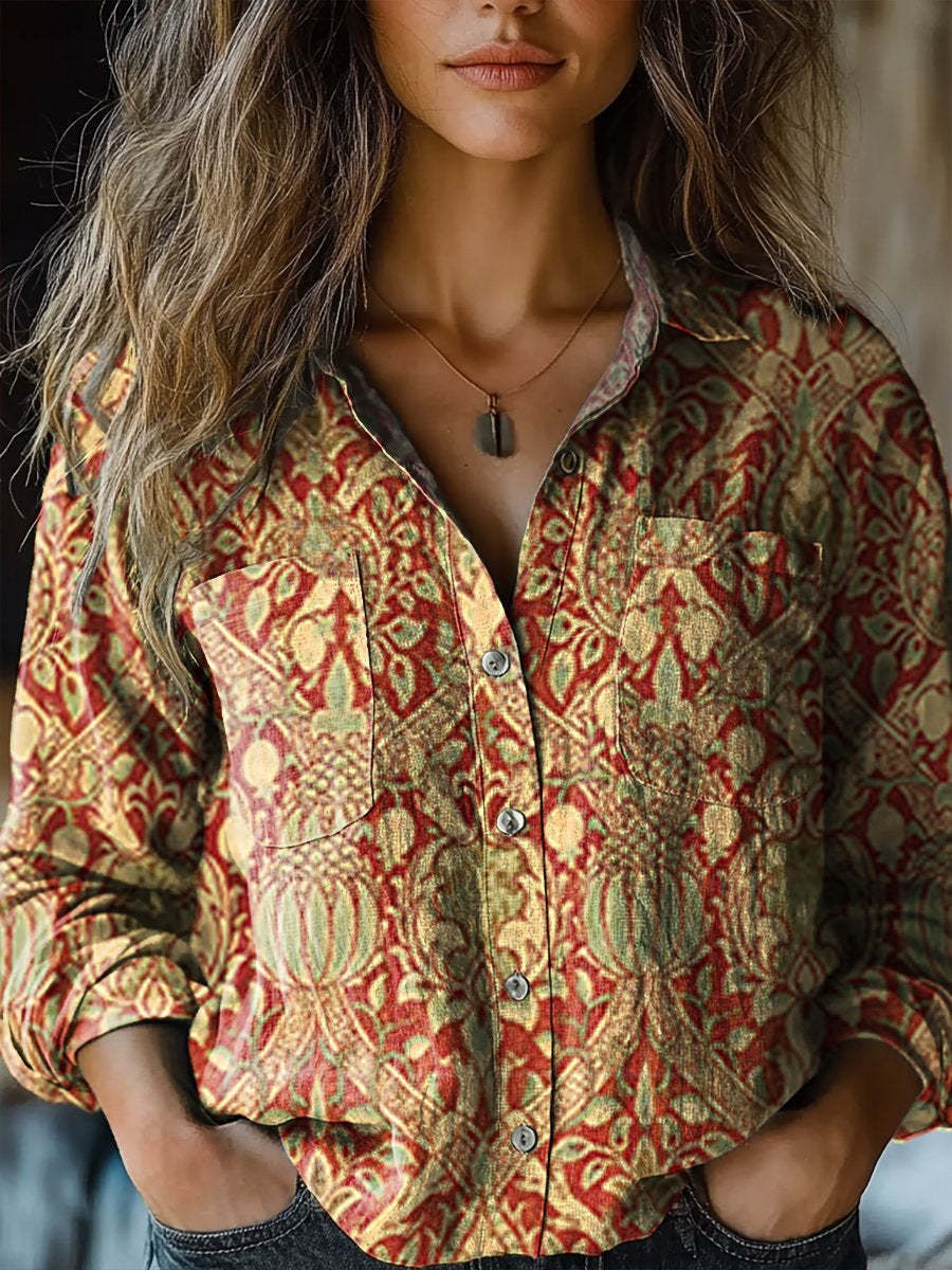 Women's Retro Ethnic Pattern Art Print Casual Long Sleeve Comfortable Cotton Shirt