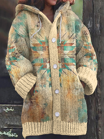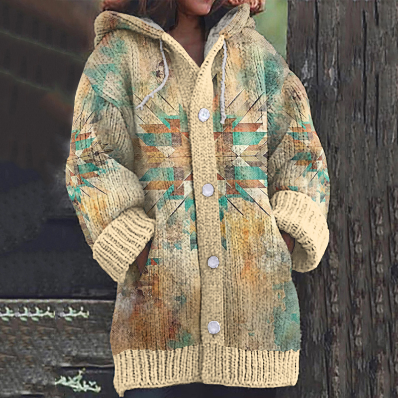 Women'S Retro Geometric Totem Pattern Hooded Sweater