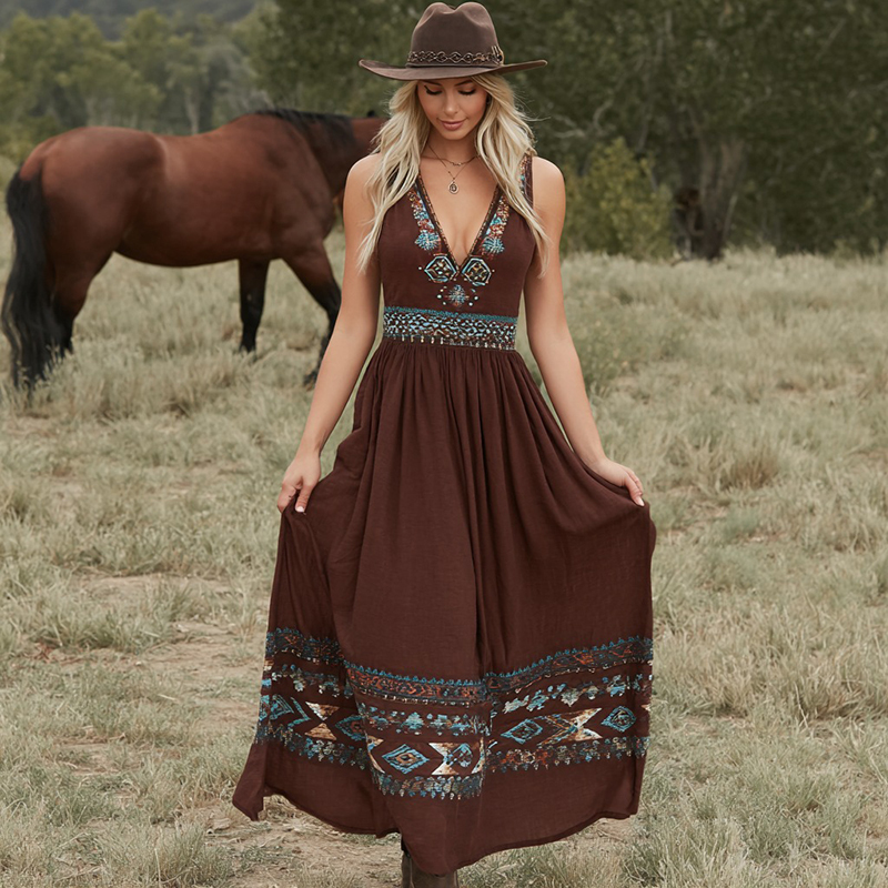 Women's Retro Geometric Totem Print Casual Sleeveless Dress